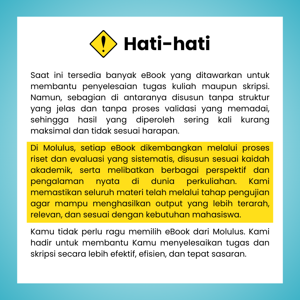 Ingin lulus cepat tanpa drama revisi berkepanjangan? Bundling Semua Ebook (14 E-Book) by Molulus adalah paket paling lengkap untuk mahasiswa yang ingin menuntaskan skripsi dengan lebih cepat, lebih terarah, dan lebih percaya diri.